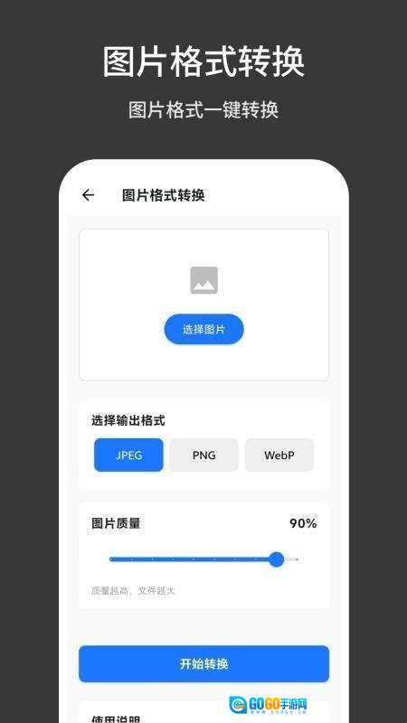 上传待处理的图片,设定图片的目标格式,完成图片格式的转换。