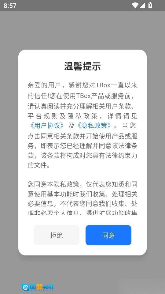 1、首先打开软件,阅读“温馨提示”内容后,点击“同意”按钮进入下一步操作