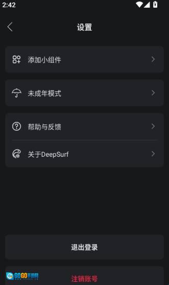3、进入deepsurf设置界面后,找到并点击“添加小组件”功能。
