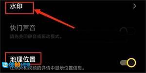 3、进入设置界面后,找到地理位置功能并将其开启,接着点击水印功能。