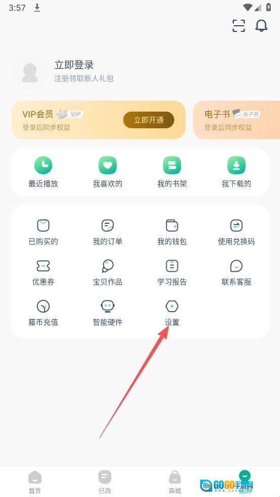 2、然后选择上方的设置