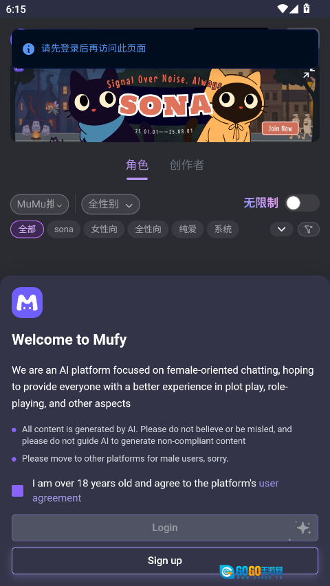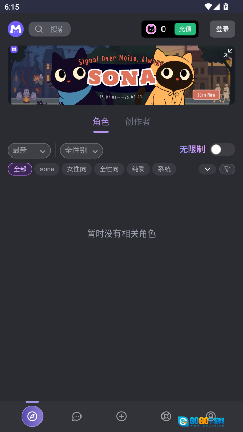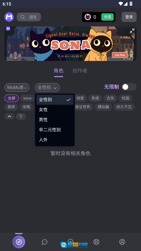2. 在首页中自由筛选自己喜欢的AI角色。