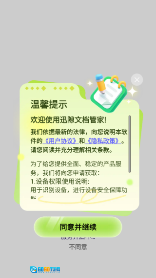 1、用户第一次打开应用时会看到用户协议页面,只有点击“同意”按钮,才能继续进行后续操作。