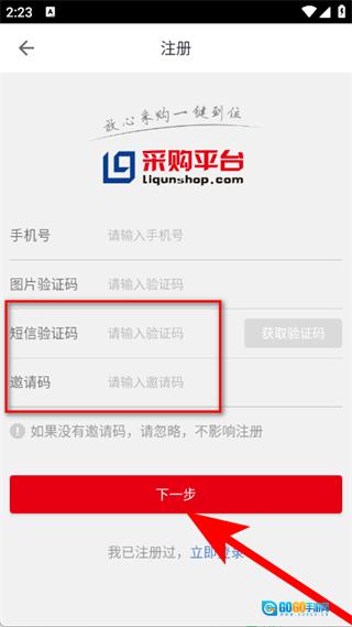 4、填写短信验证码,若有邀请码可选择填写,之后点击下一步,即可完成账号注册的全部流程。