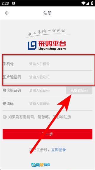 3、进入注册页面后,填写手机号和图片验证码,接着点击“获取验证码”按钮。
