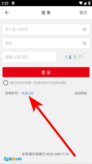 2、在登录页面,点击快速注册,进入注册页面。