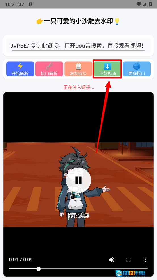 3、然后粘贴所需去水印的作品,点击"开始解析"。
