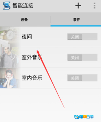 2、打开事件页面,可对夜间、室外音乐、室内音乐等进行设置;