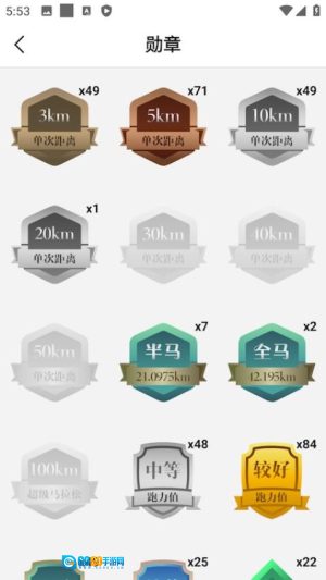 3、成就系统设有阶段性运动目标,完成相应挑战即可获得虚拟勋章作为奖励。