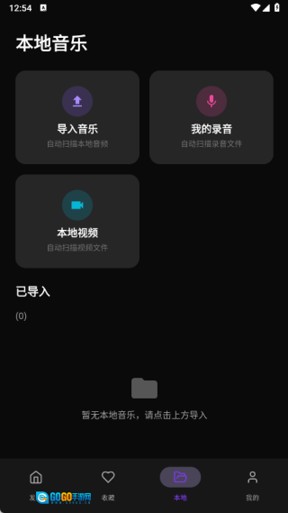 3、本地页面支持导入音乐,以及查看我的录音和本地视频内容。