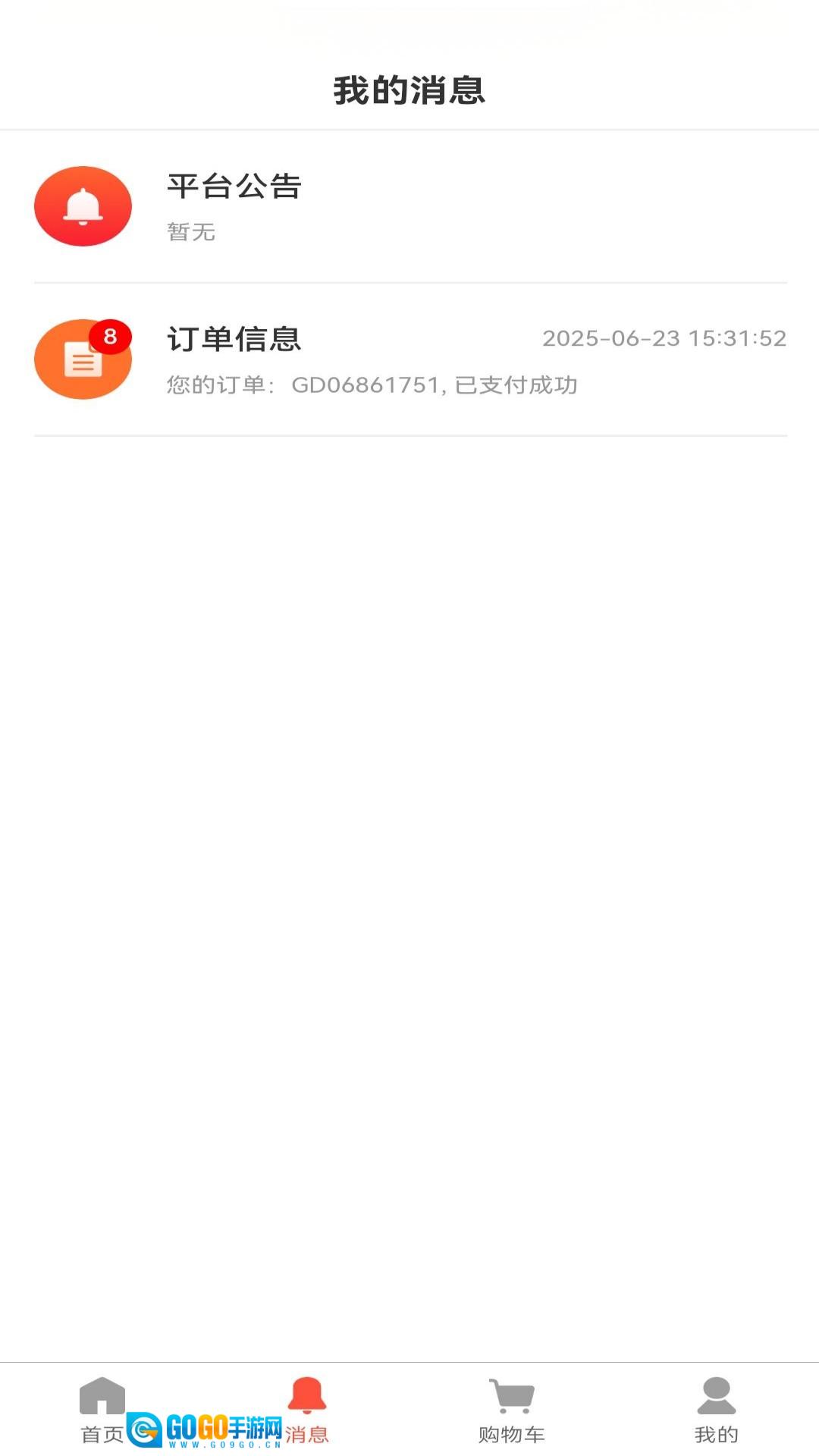 2、在消息页面能够了解最新的消息动态,以便及时查看最新且完整的订单相关信息。