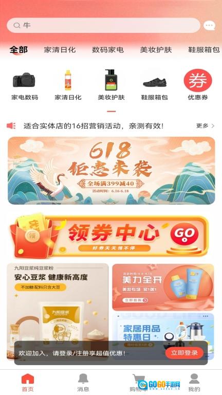 首页上陈列着丰富多样的商品资源,您可以前往领券中心领取各类优惠券。
