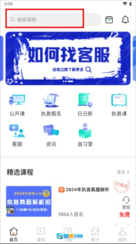 1、打开兽医小灶App,在搜索框中输入课程名称开展搜索;