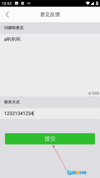 4、进入意见反馈界面后,点击【提交】按钮,就能完成意见反馈的操作。