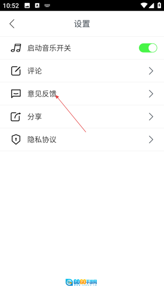 2、进入设置界面后,找到并点击【意见反馈】选项,即可进入对应的意见反馈界面。