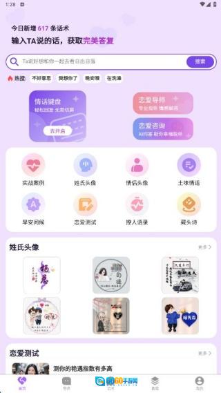 2、首页设有实战案例、姓氏头像、土味情话、恋爱测试、撩人语录等多个板块,你可以根据自身需求筛选对应的功能来开启体验。