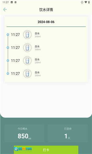 3、点击主界面上的“喝水”按钮,每喝一次水就能一键完成打卡。你还可以挑选不同的饮品类型(比如温水、果汁、牛奶之类)来做详细记录,这样会更符合你实际的饮水习惯。