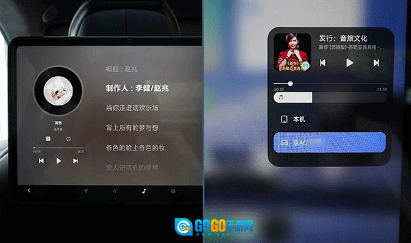 3、后排屏幕如果想要自行搜索音乐播放的话需要通过下拉菜单进行播放音源切换,不然只能使用Pad扬声器播放。