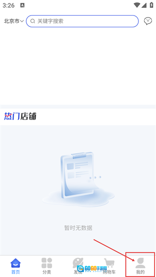 1、点击底部【我的】进入个人页面,该页【热门店铺】板块当前显示暂时无数据,可进行后续操作。