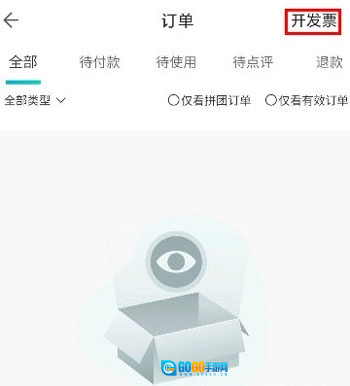 2、点击页面右上角的【开发票】按钮,挑选需要开具发票的订单。