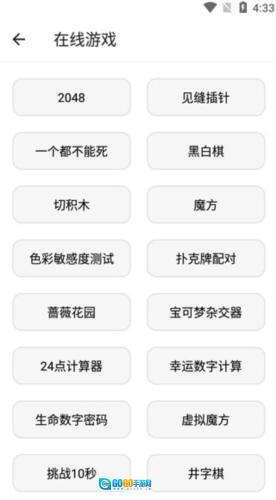8、打开在线游戏,里面包含2048、见缝插针、一个都不能死、黑白棋、魔方等游戏。
