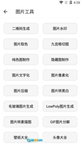 5、点击进入图片共苦功能,可使用二维码生成、图片水印添加、图片取色、九宫格切图、纯色图制作等多种工具。