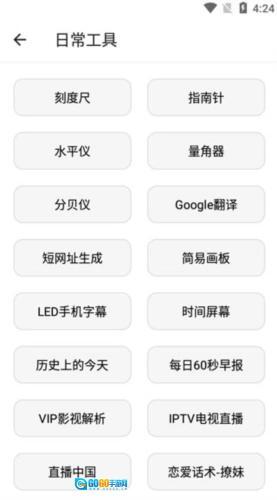 2、打开日常工具板块,里面包含刻度尺、指南针、水平仪、量角器、Google翻译、短网址生成等功能;