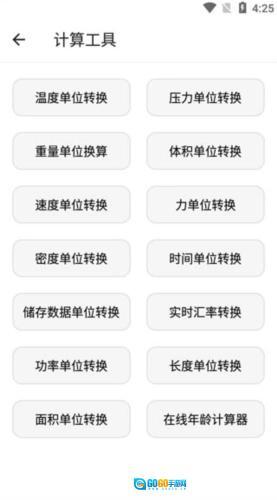 8、计算工具:温度单位转换、压力单位转换、重量单位换算、体积单位转换、时间单位转换、实时汇率转换、面积单位转换等