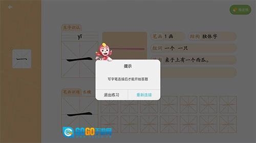 开始进行书写练习前,请记得连接蓝牙写字笔,否则将无法正常开展练习。