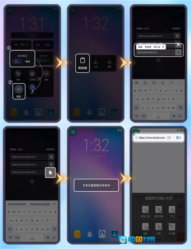 2、点击信号小球,进入后选择“更多”,找到“剪切板”选项,将内容粘贴到输入框里,再点击最后的复制按钮,当页面弹出“文本已复制到云手机中”的提示时,就说明在云手机中复制成功了。
