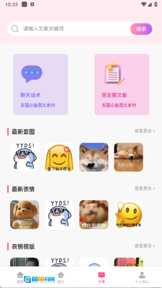 在文章页面里,你能够获取聊天话术、朋友圈文案相关内容,同时还能使用最新套图、最新表情以及表情模板等功能。