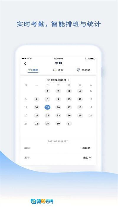 3、实时掌握考勤动态,借助智能化手段完成排班及统计工作。