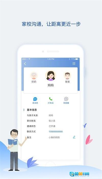 1、在这里老师可以查看家长的联系方式,家长也能直接通过电话和老师沟通。