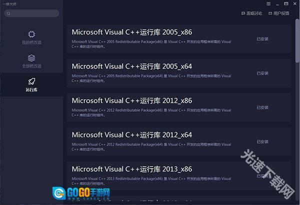 7、另外,由于大部分游戏都需要依赖运行库才能运行,这里已经把所需的运行库全部安装完毕了。