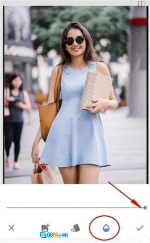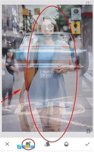 4、点击第三个不透明度工具,把不透明度调至最大,只需将滑块拖到最右端,接着点击√确认图片设置,返回主菜单。