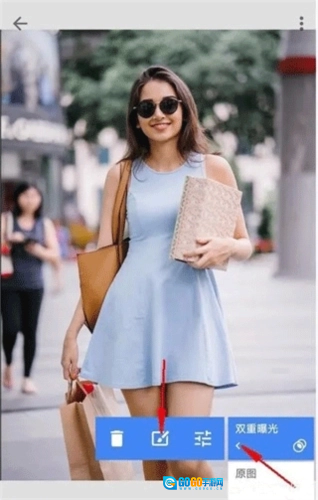6、打开查看修改内容的工具后,能看到之前添加的双重曝光步骤,点击双重曝光旁的小导向箭头,接着点击中间的画笔工具,通过点击画笔工具就能进入蒙版编辑界面。