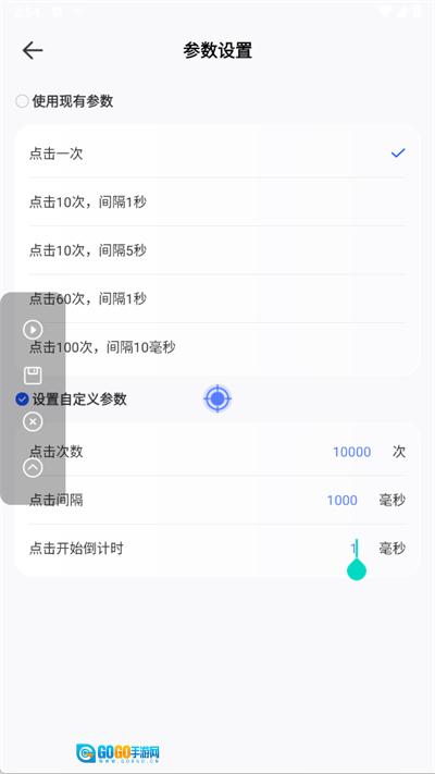 3、进入参数设置界面,你还能根据自身需求自定义点击参数,即便是1秒点击10000次这样的设置也能实现。