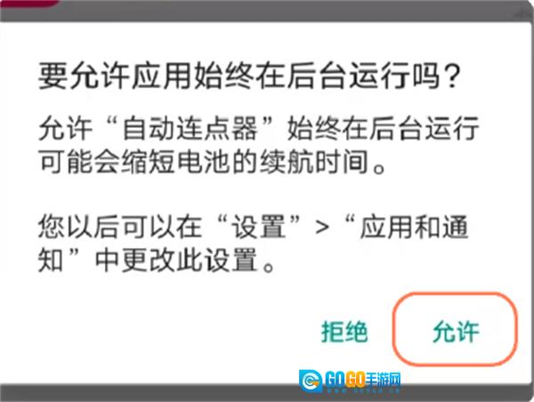 点击允许应用始终在后台运行。