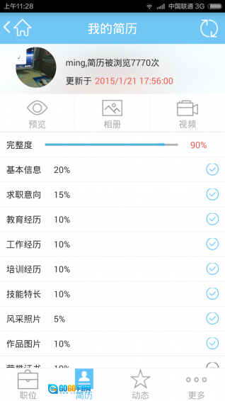 可以快速生成简短简历,支持简历内容实时更新,还能针对多种职业进行简历投递。