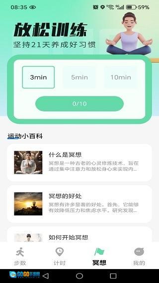 4、在冥想页面,用户可以自定义每日冥想时长,从而帮助自己快速舒缓情绪、放松身心。