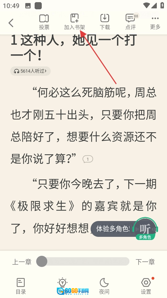 3、点击屏幕,选择“加入书架”选项,这样就能把书籍保存下来,方便之后继续阅读。