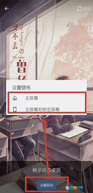 3、待加载完成后,点击【设置壁纸】,再根据自身需求选择仅主屏幕,或是主屏幕与锁定屏幕同时设置。