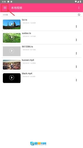1、启动视频播放应用,点击界面左上角的菜单图标,展开各项功能选项列表。