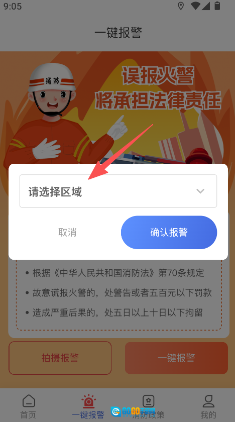 2、规范报警流程,明确误报火警的法律责任,需选定区域后再确认报警,以此保障报警行为的严肃性与有效性。