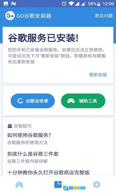 1、能够适配不同版本的Android系统,支持一键安装谷歌三件套,是一款操作便捷的谷歌应用商店及Google框架相关软件。