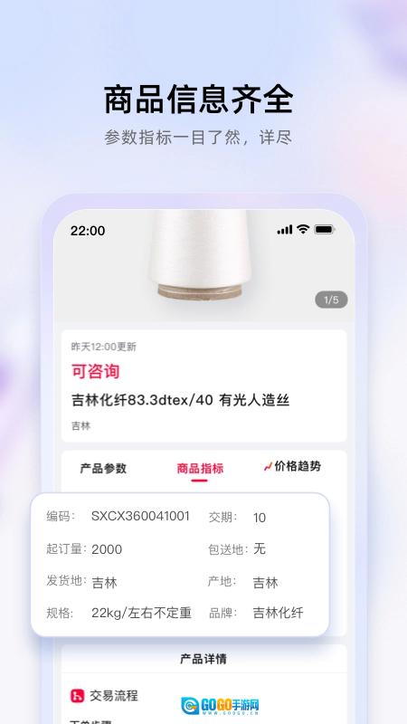 飞梭软件是一款专为纺织行业打造的综合性应用,整合了生产监控、管理工具、行业资讯与线上交易等功能。它既能实时反馈工厂生产情况,又提供丰富的管理工具,助力企业优化资源配置、提升决策水平。借助平台获取的行业动态,用户可及时把握市场趋势,做出更精准的业务判断。此外,飞梭支持线上交易,有效简化购纱流程,显著提高交易效率。