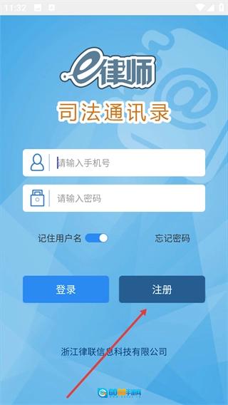 1、在【e律师-司法通讯录】的登录页面,点击页面上的【注册】按钮,即可进入账号注册的信息填写界面。