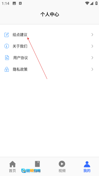 2、进入个人中心后,点击【给点建议】选项,即可进入问题反馈的功能界面。