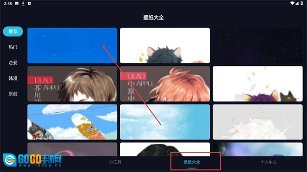 3、点击底部的【壁纸大全】选项,就能进入壁纸分类页面,在这里可以浏览推荐、热门等不同类别的壁纸资源。