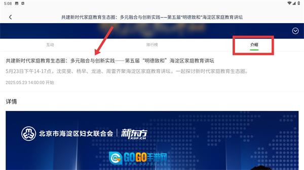 4、切换到【介绍】标签页,就能查看这场直播的活动背景、举办时间等基础信息,以便更深入地了解活动详情。